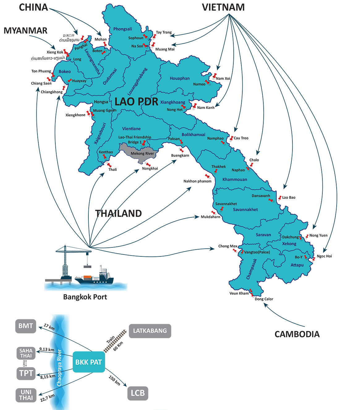 Our main objective is to provide Efficient, Reliable transport solutions within the Southeast Asian region, in particular between Laos, Vientnam and Thailand, across borders in ASEAN countries. We have a vast network of partners and associates worldwide which is an invaluable advantage in delivering our high quality services to our valuable customers.